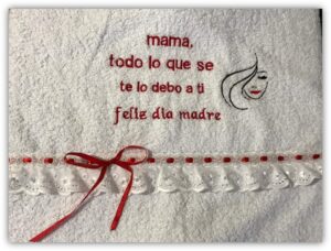 Toalla de tamaño cuerpo bordado con maquina. Tamaño desde 130 cm x 70cm