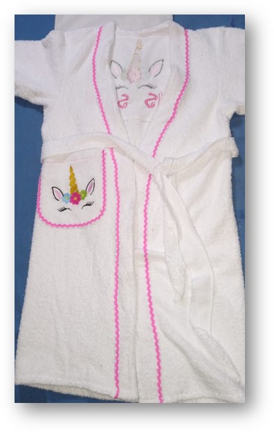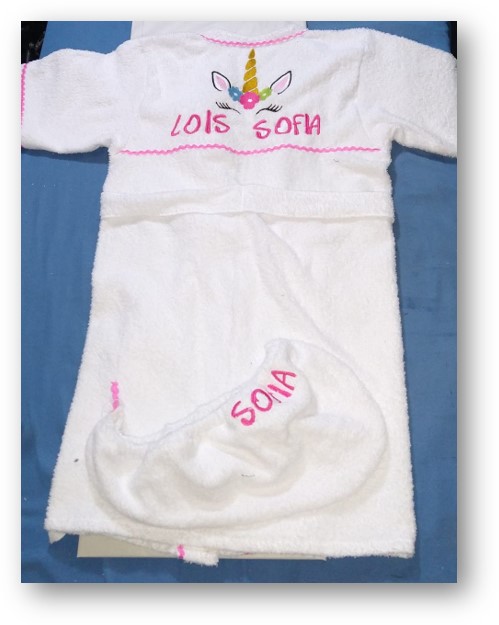 Salida de baño tamaño niño y aduelto (S, M, L) personalizado con bordado con maquina.